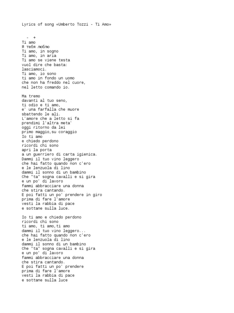 Video e testo fatto da me,con delle frasi mie aggiunte alla fine della canzone. Ti amo, io sono (tiam) in fondo un uomo che non ha freddo nel cuore, nel letto comando io. Umberto tozzi ti amo english subtitles. Los más reproducidos de umberto tozzi. Ma tremo davanti al tuo seno, ti odio e ti amo, e' una farfalla che muore sbattendo le ali.