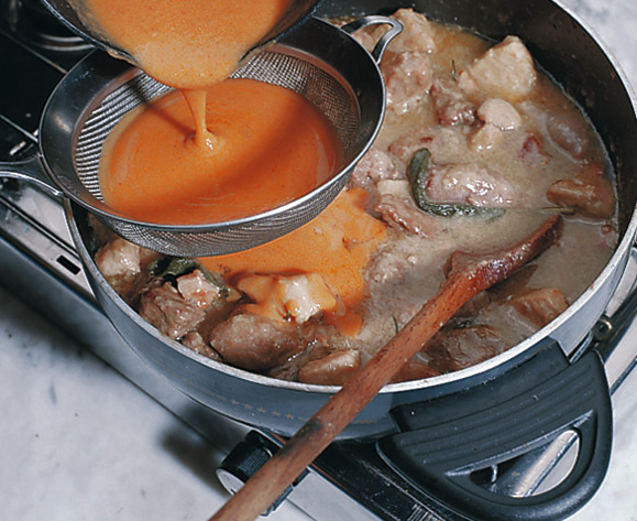 Tritare finemente il lardo e la cipolla e friggeteli assieme. Tonco del pontesel, un piatto fra mito e tradizione. Si tratta di un particolare spezzatino a base di lucanica trentina (una sorta di salsiccia) e carni miste. Questo è un piatto pronto che potrai decidere di usarlo. Una cipolla, due spicchi di aglio, olio di oliva g 50, lardo g 200.
